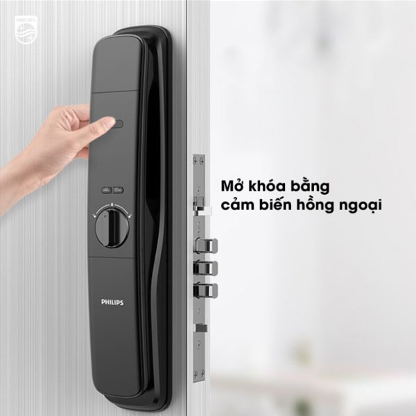 Với cảm biến chạm và cảm biến hồng ngoại trên tay nắm, cửa có thể mở dễ dàng hơn nhiều. Khi tay chạm vào cảm biến chạm và cảm biến hồng ngoại phát hiện vật cản, khóa sẽ mở.
